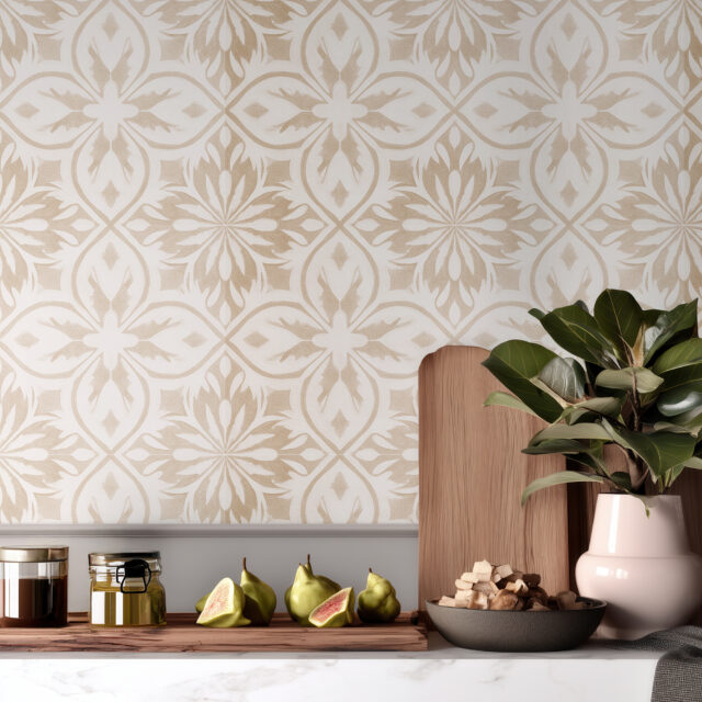 ✨ Light Beige Moroccan Wallpaper – Tan Geometric gives a handcrafted feel that pairs beautifully with white marble or wood countertops.