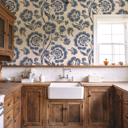 Mediterranean Floral Wallpaper – Classic Blue Hand-Painted Pattern