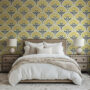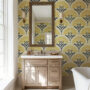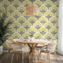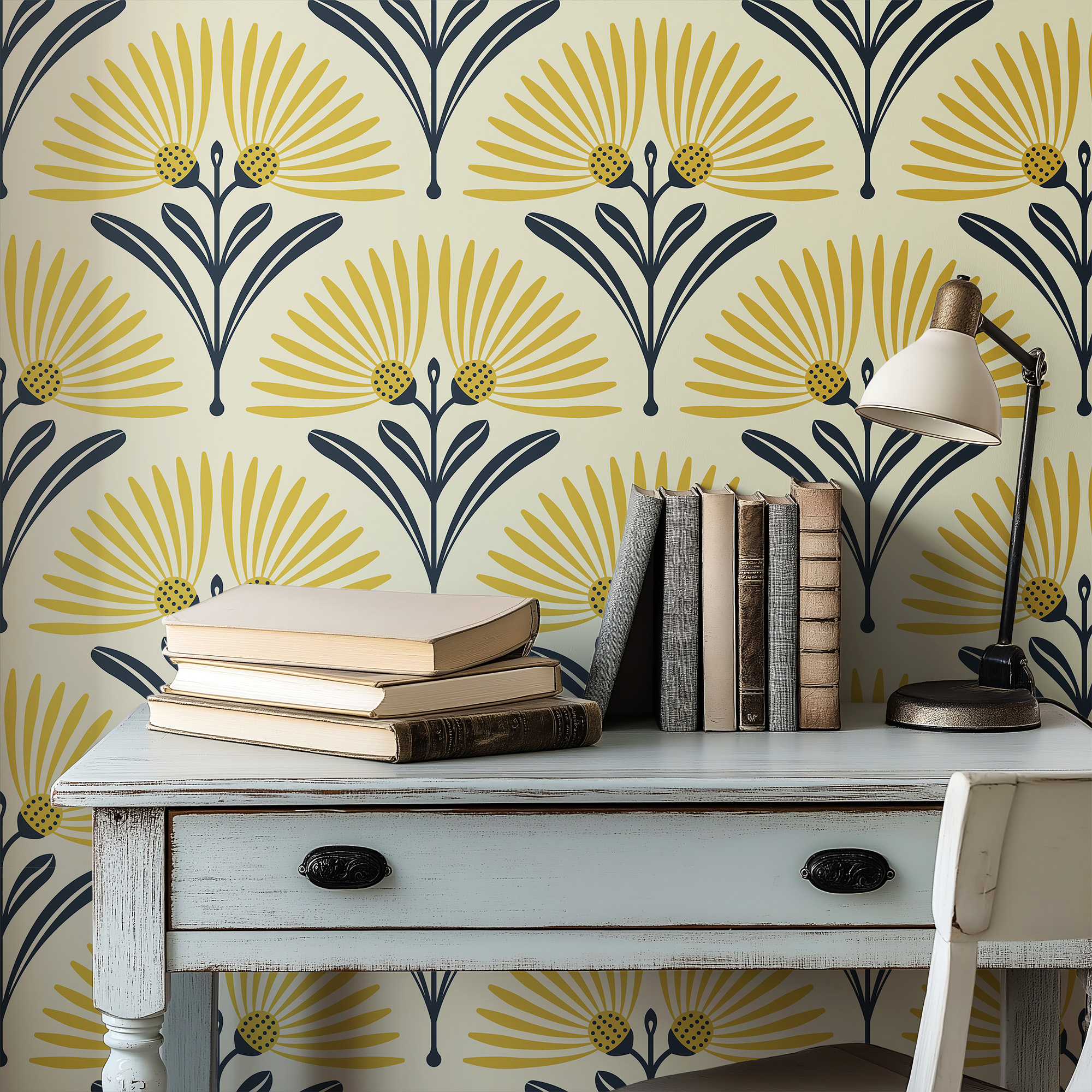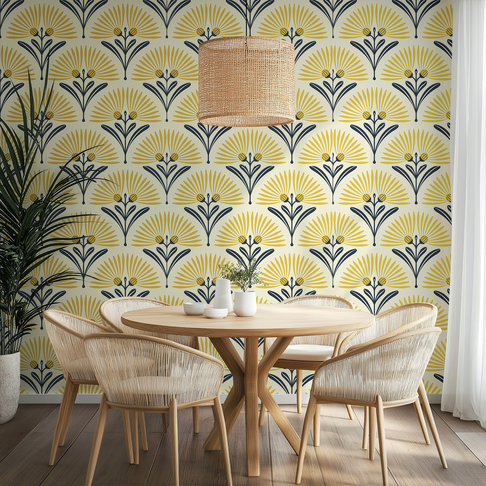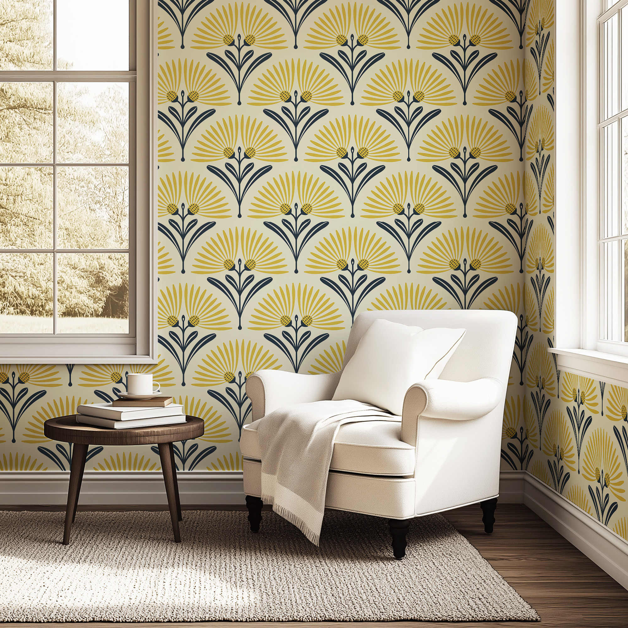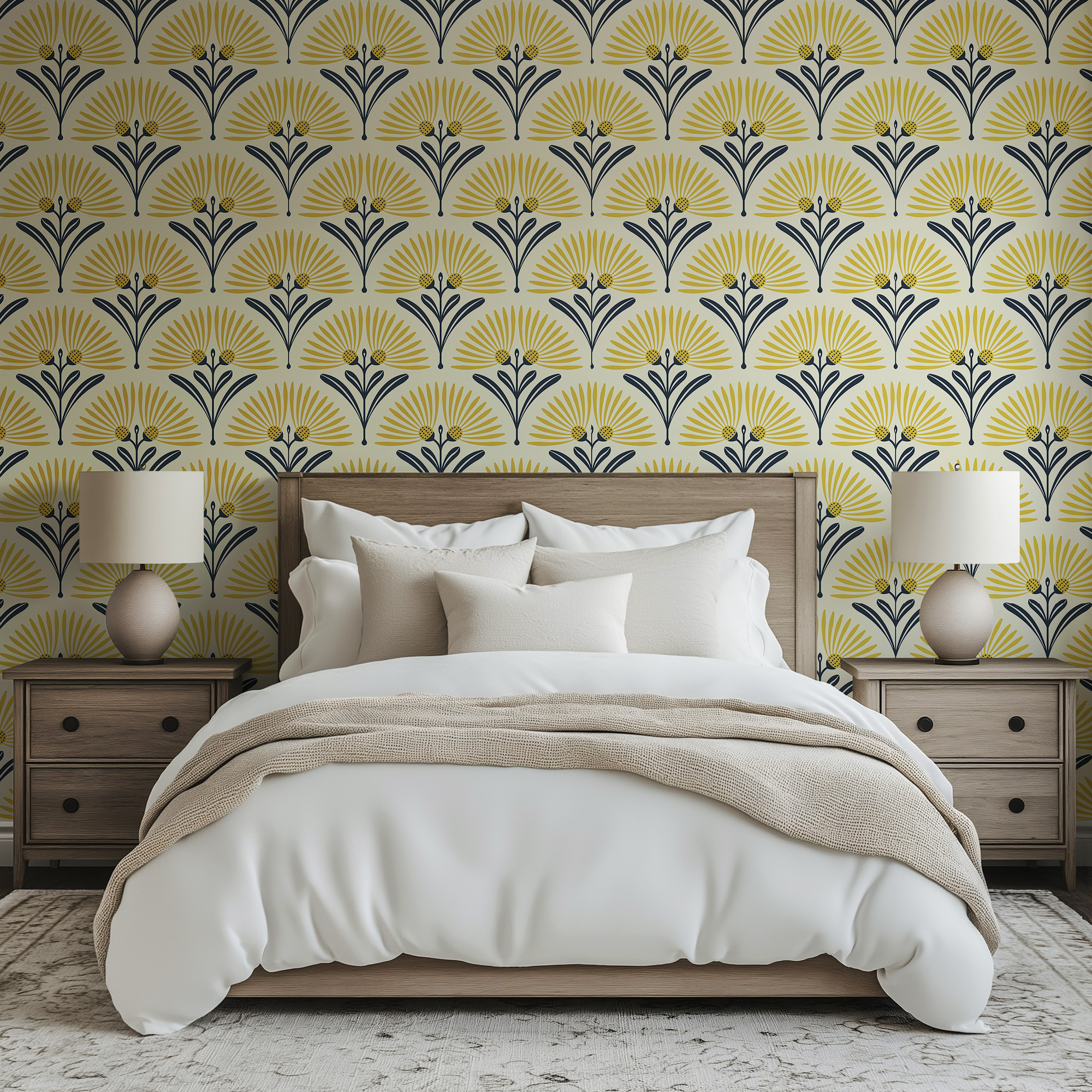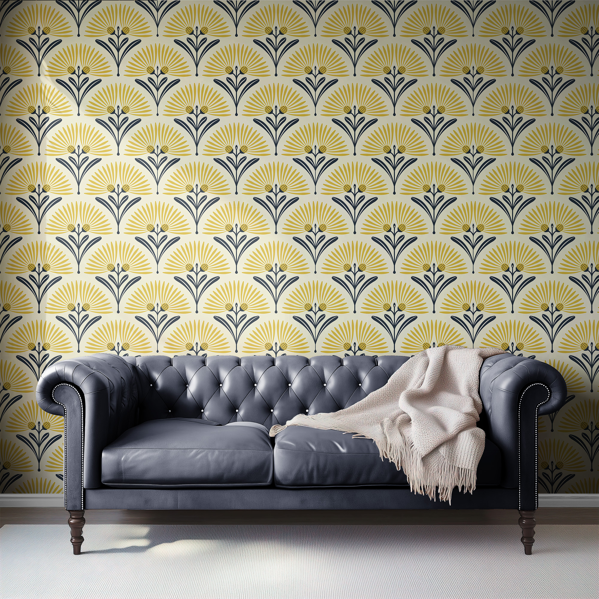 Art Deco is one of the most sought-after wallpaper styles in 2026, and this design delivers the look at its finest. The bold geometric-floral fan motif creates instant architectural presence on any wall, while the warm gold palette feels luxurious without being overwhelming. Customers love how it transforms even a small powder room into a jewel-box moment. Interior designers reach for it when clients want a wall that feels timeless, glamorous, and bold.