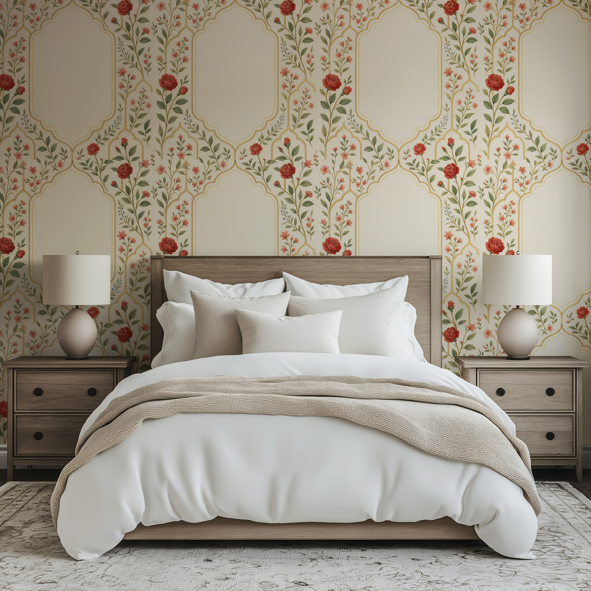 Perfect for living rooms, dining areas, or romantic bedrooms, this bright botanical design pairs effortlessly with classic decor and warm wood accents to bring timeless elegance to your space.