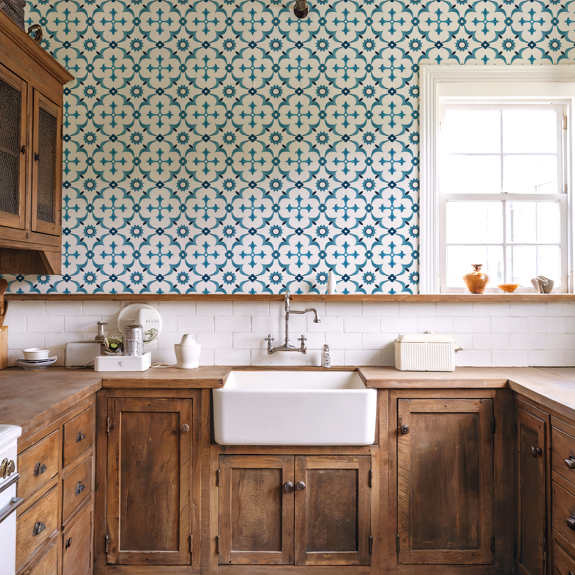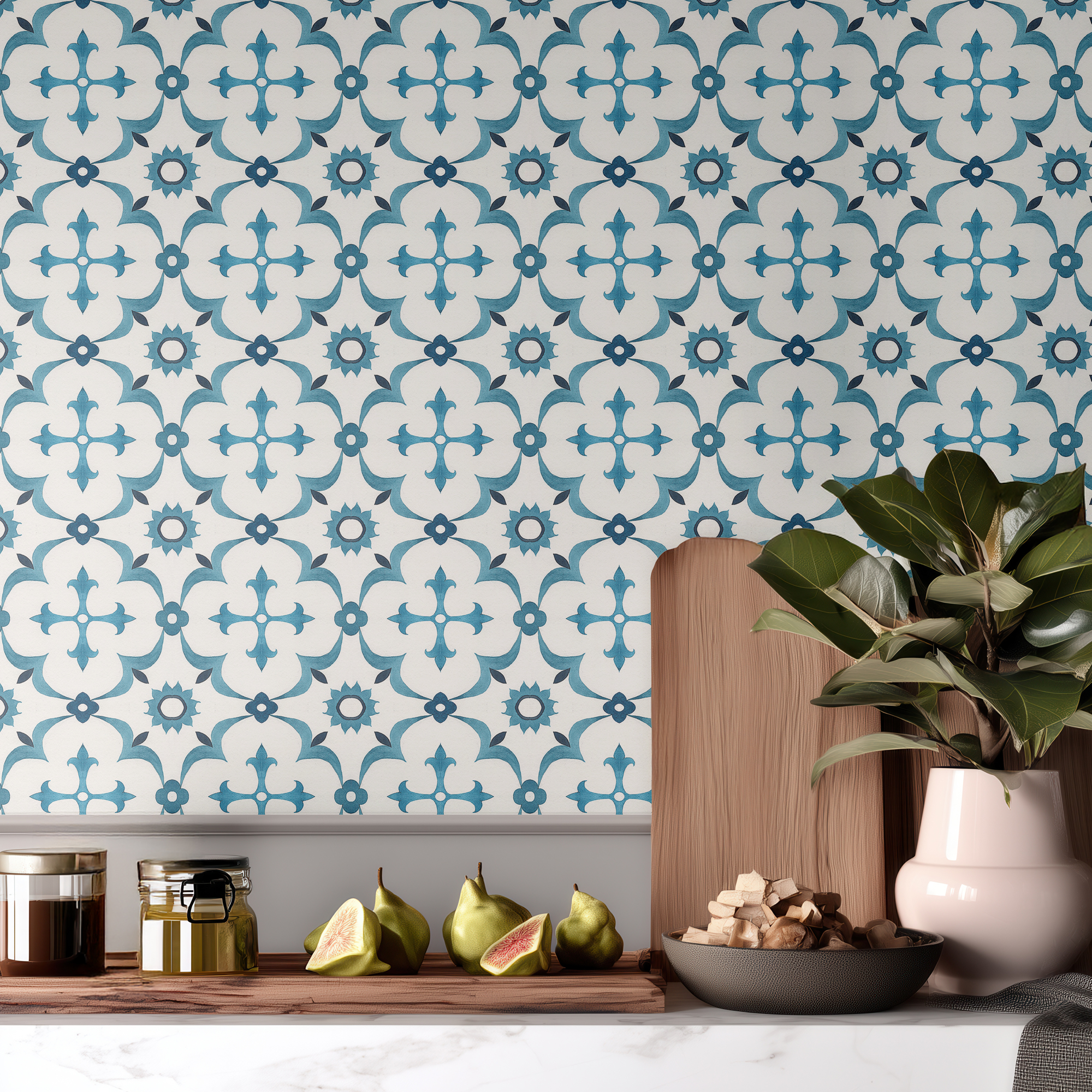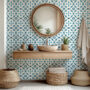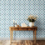 Elevate your space with our Blue Moroccan Tile Wallpaper, inspired by traditional Mediterranean and Moroccan patterns. The crisp white background paired with bold blue geometric motifs creates a fresh, timeless look perfect for bathrooms, kitchens, or accent walls.