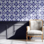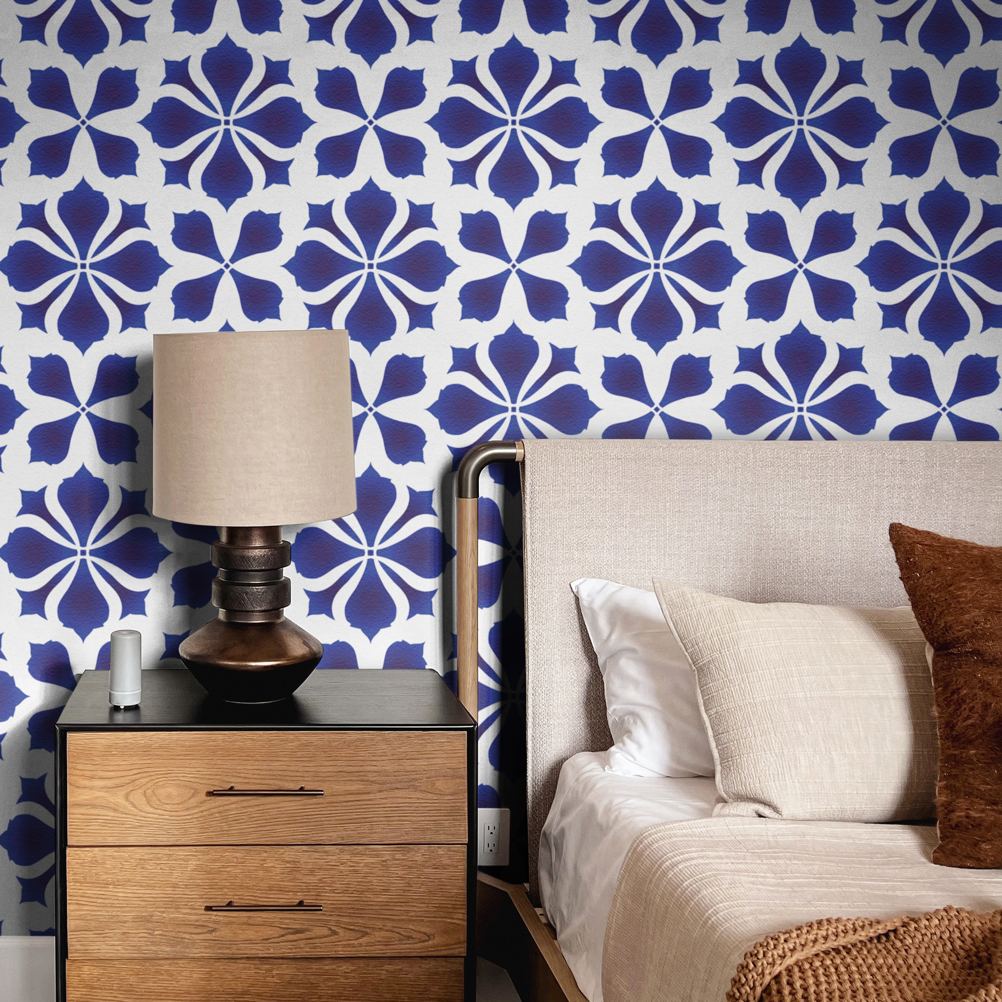 Crafted in a peel and stick removable finish, this wallpaper is renter-friendly, easy to apply, and easy to remove, bringing artisanal character to any room without the permanence of tile.