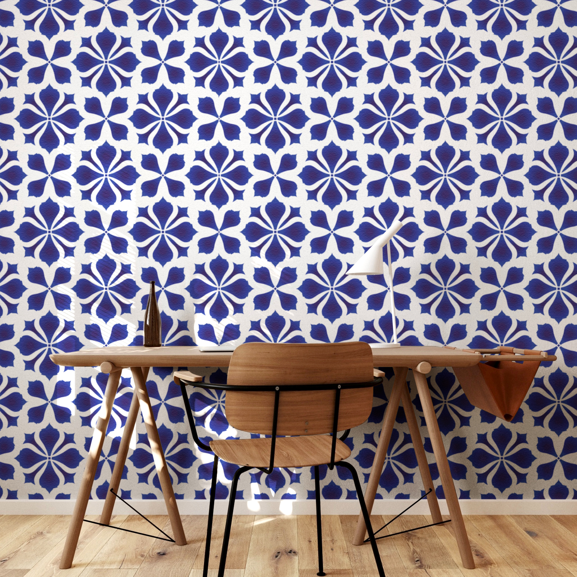 Bring timeless coastal charm to your home with our Blue Portuguese Tile Wallpaper, featuring intricate hand-painted inspired motifs in rich cobalt blue over a crisp white background.