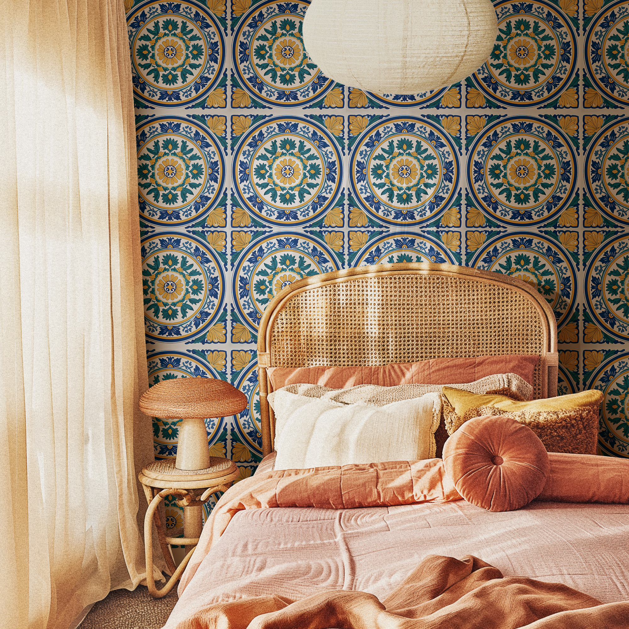Perfect for accent walls, kids’ rooms, or creative studios, it combines boho charm with modern artful style. The peel and stick removable finish makes it a renter-friendly wallcovering, easy to apply and remove without damage.