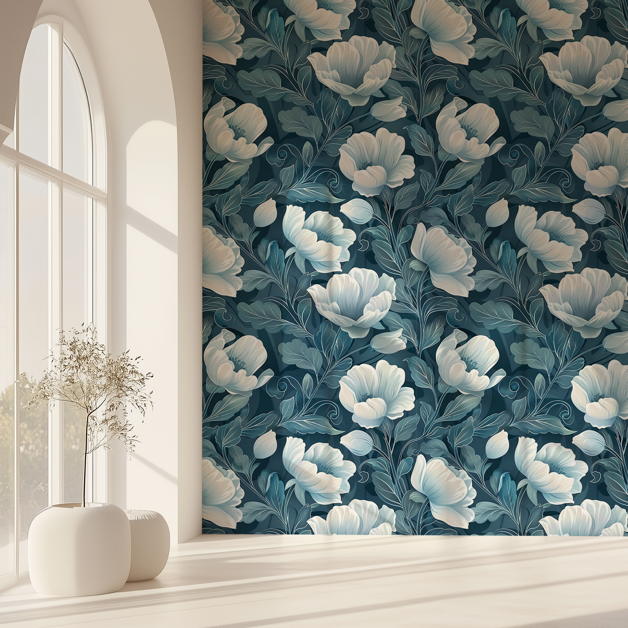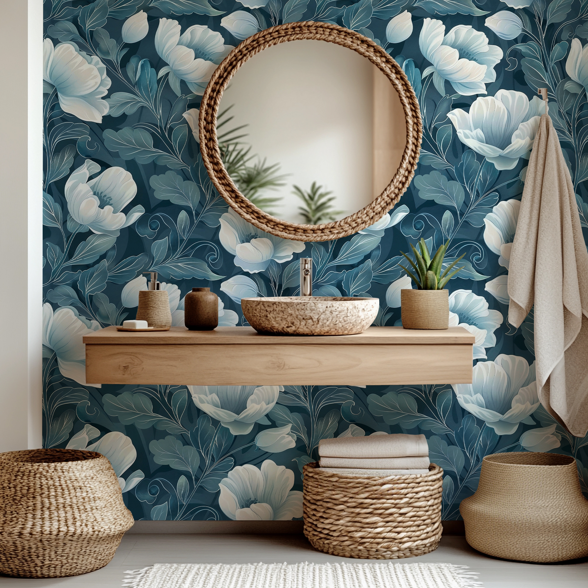 The oversized floral pattern brings a sense of luxury and calm, turning your wall into an artful statement of refined elegance.