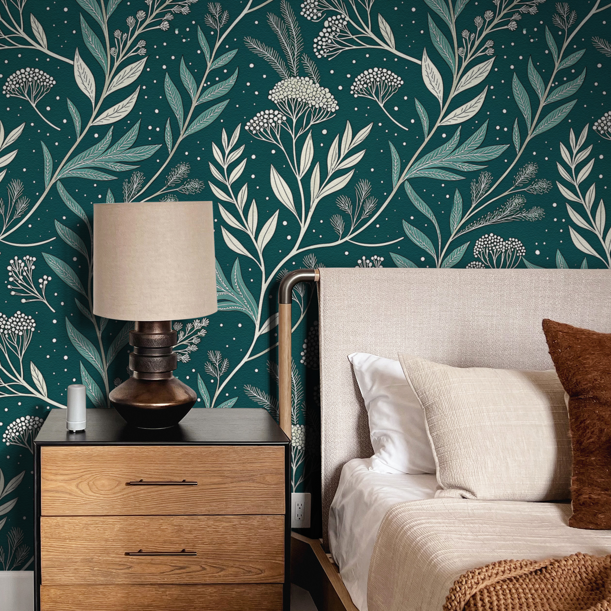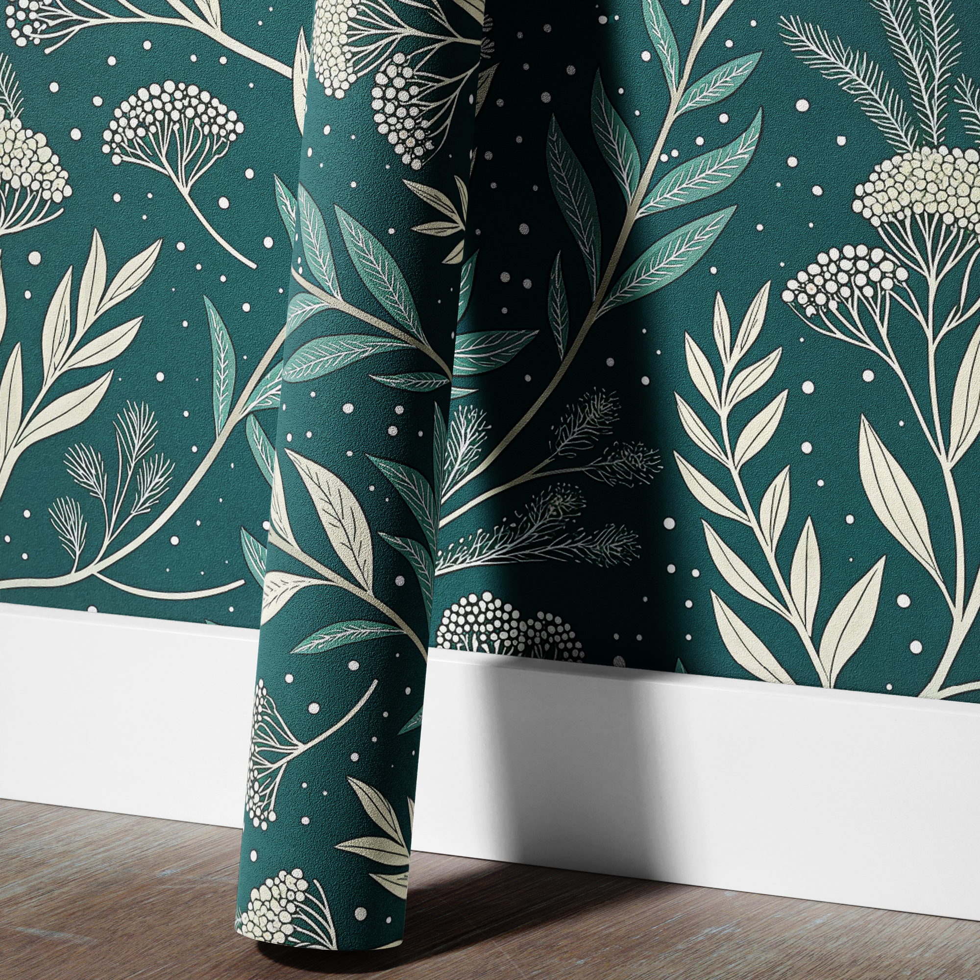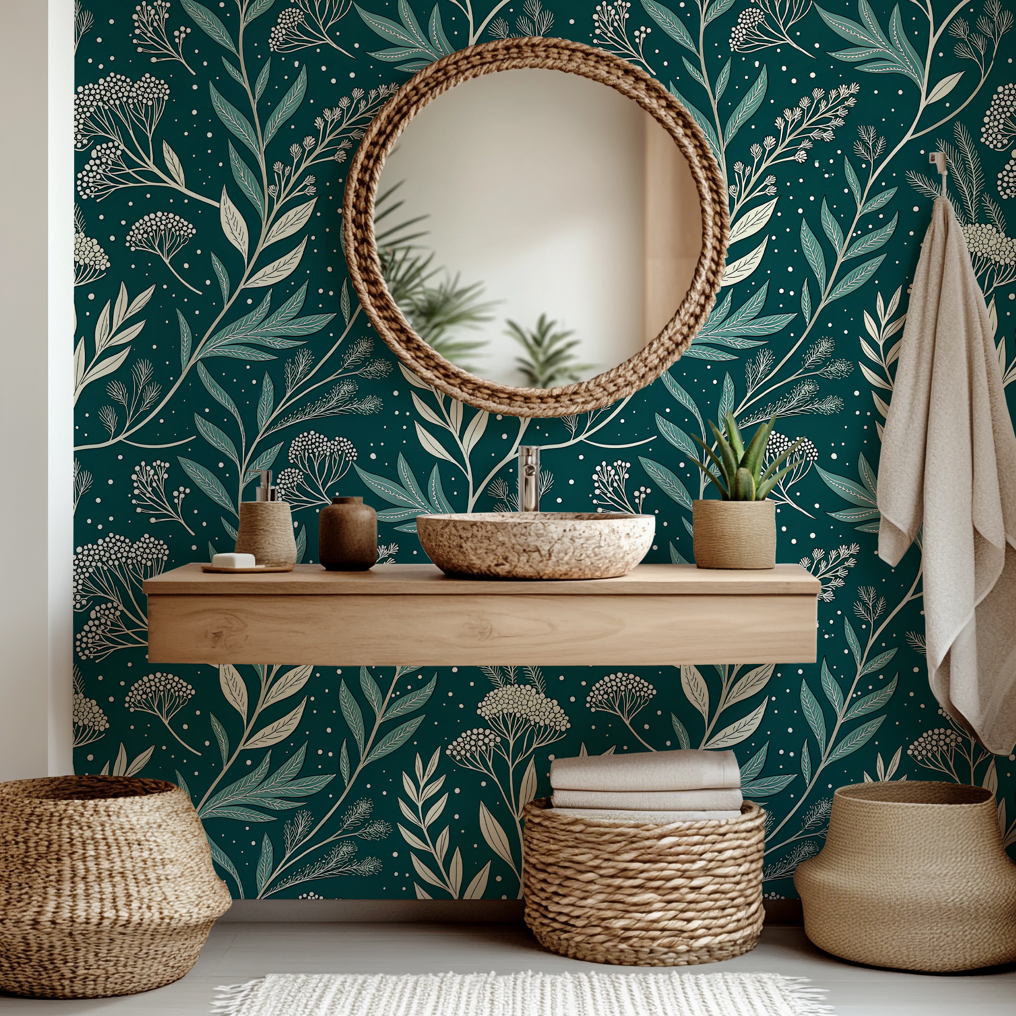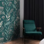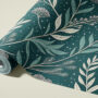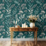 Bring depth and sophistication to your space with our Dark Green Botanical Wallpaper, featuring elegant hand-drawn foliage in soft neutral tones over a rich emerald background.