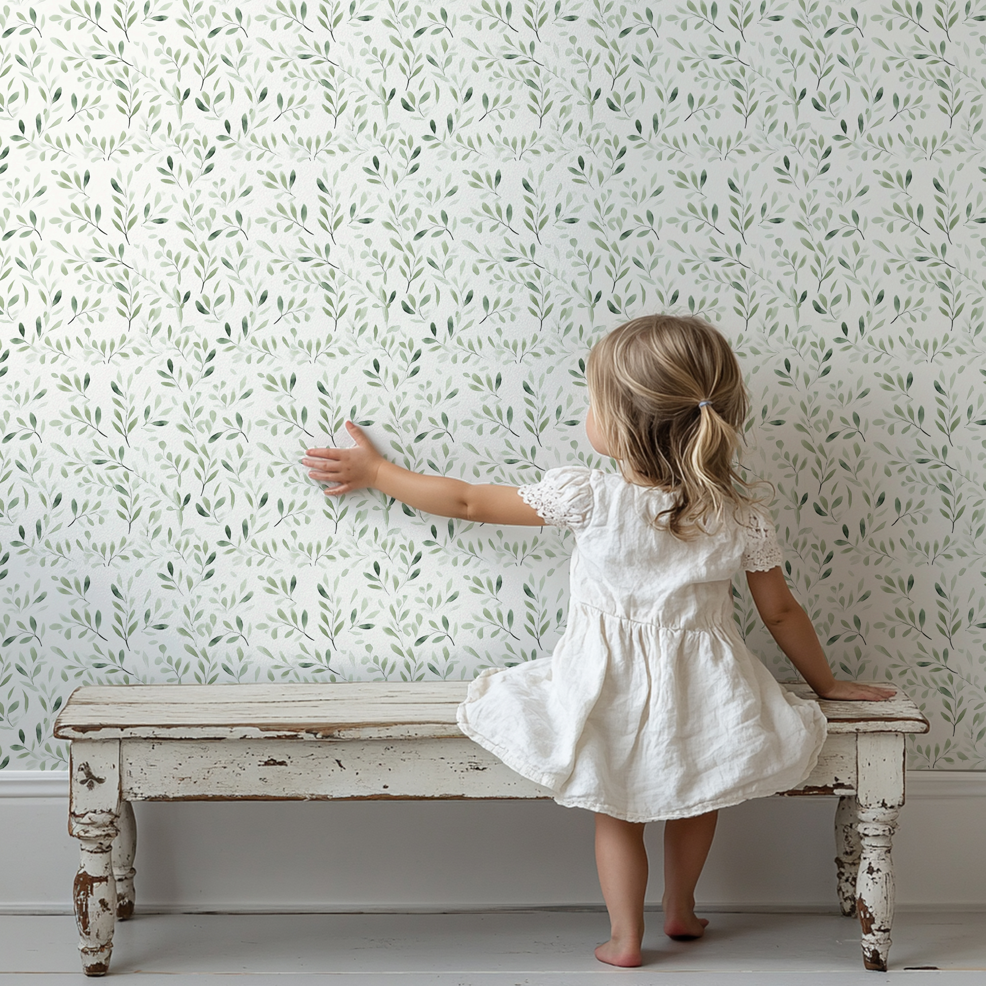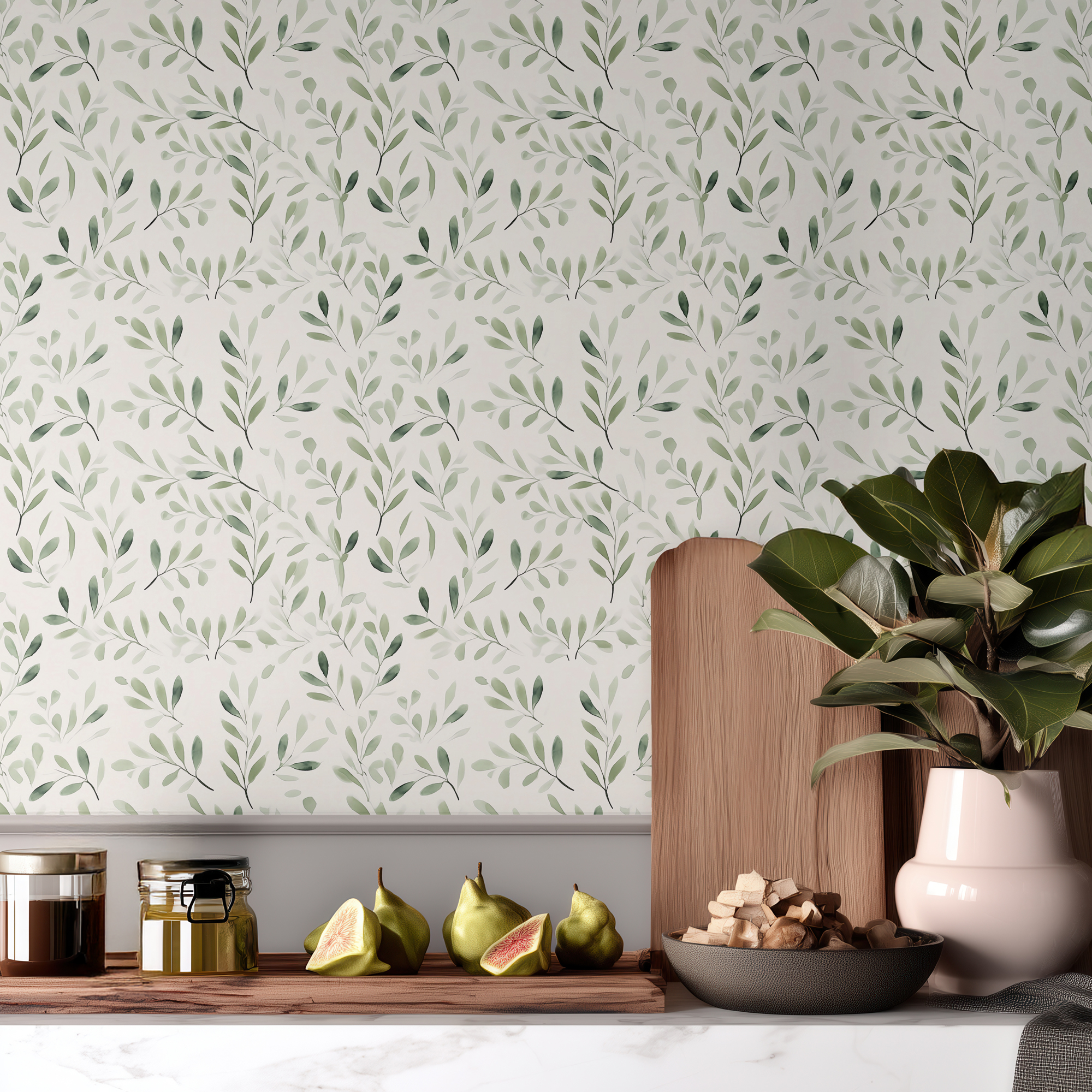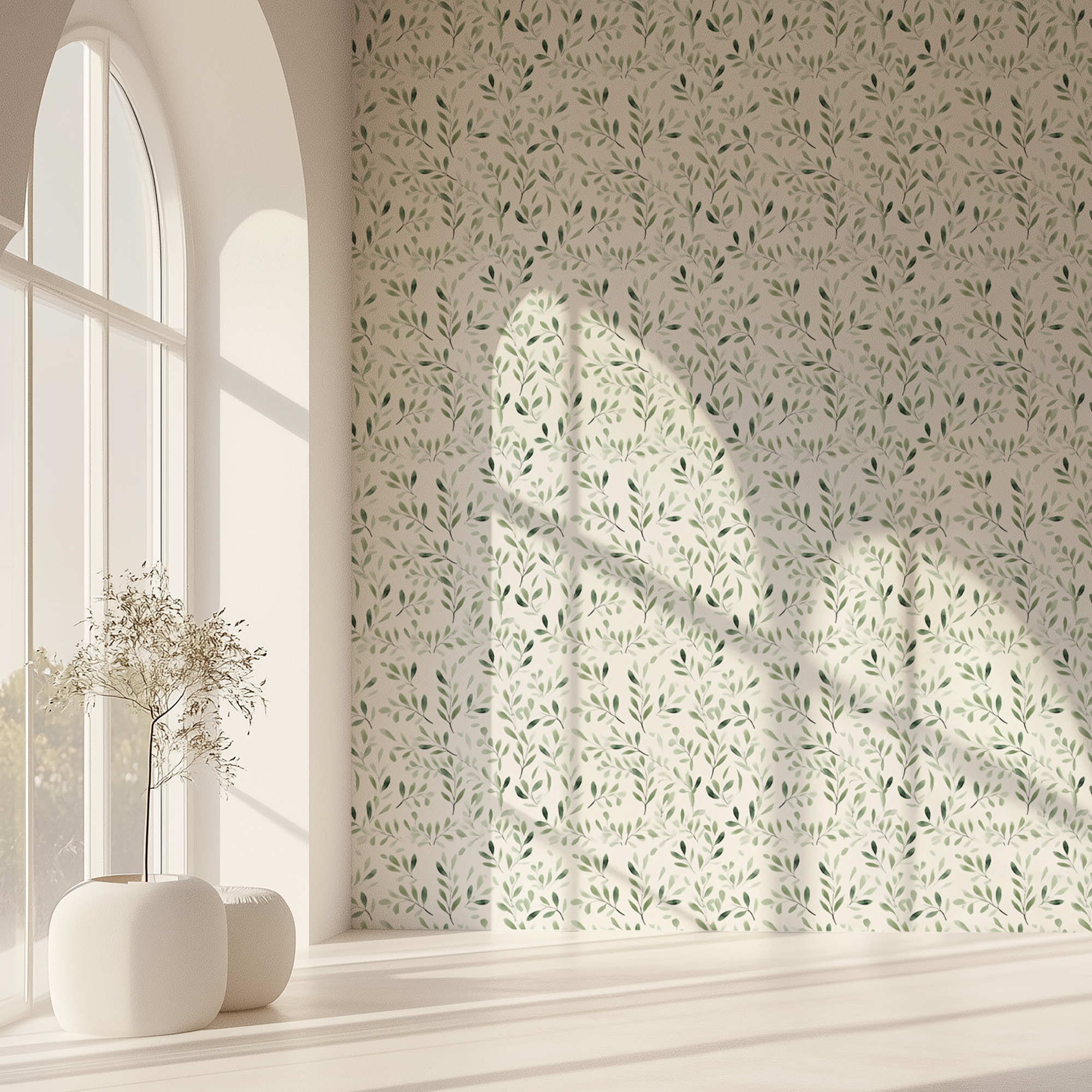 Bring a touch of nature indoors with our Green Watercolor Leaf Wallpaper, featuring soft hand-painted branches in layered shades of green over a light background. The subtle watercolor effect creates a fresh and calming botanical look, making it ideal for modern and timeless interiors alike.