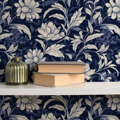 Dark Blue Floral Wallpaper – Classic Romantic Pattern