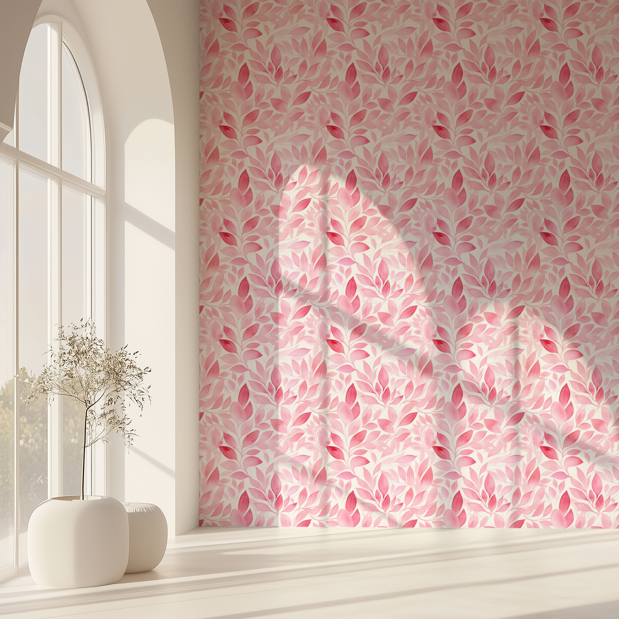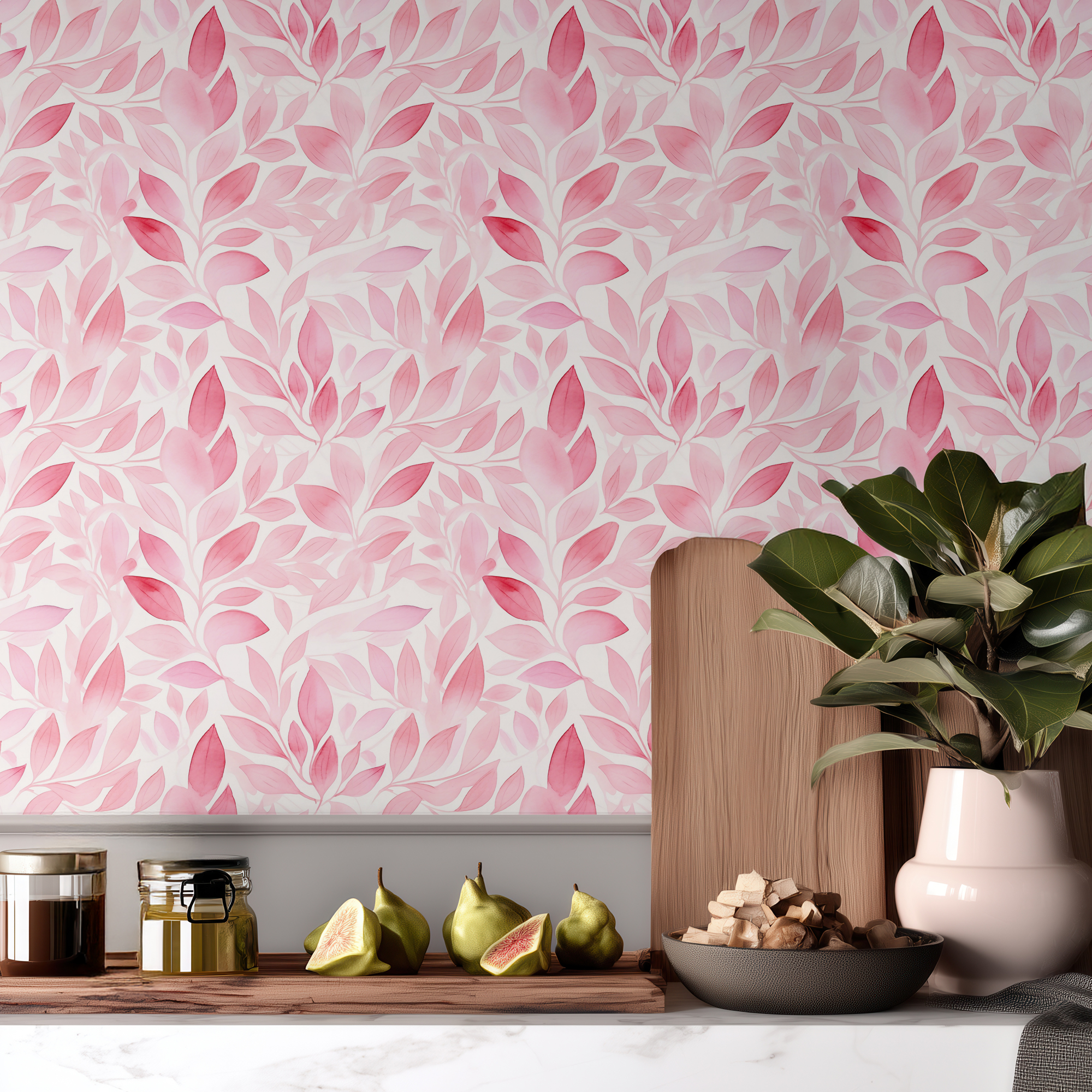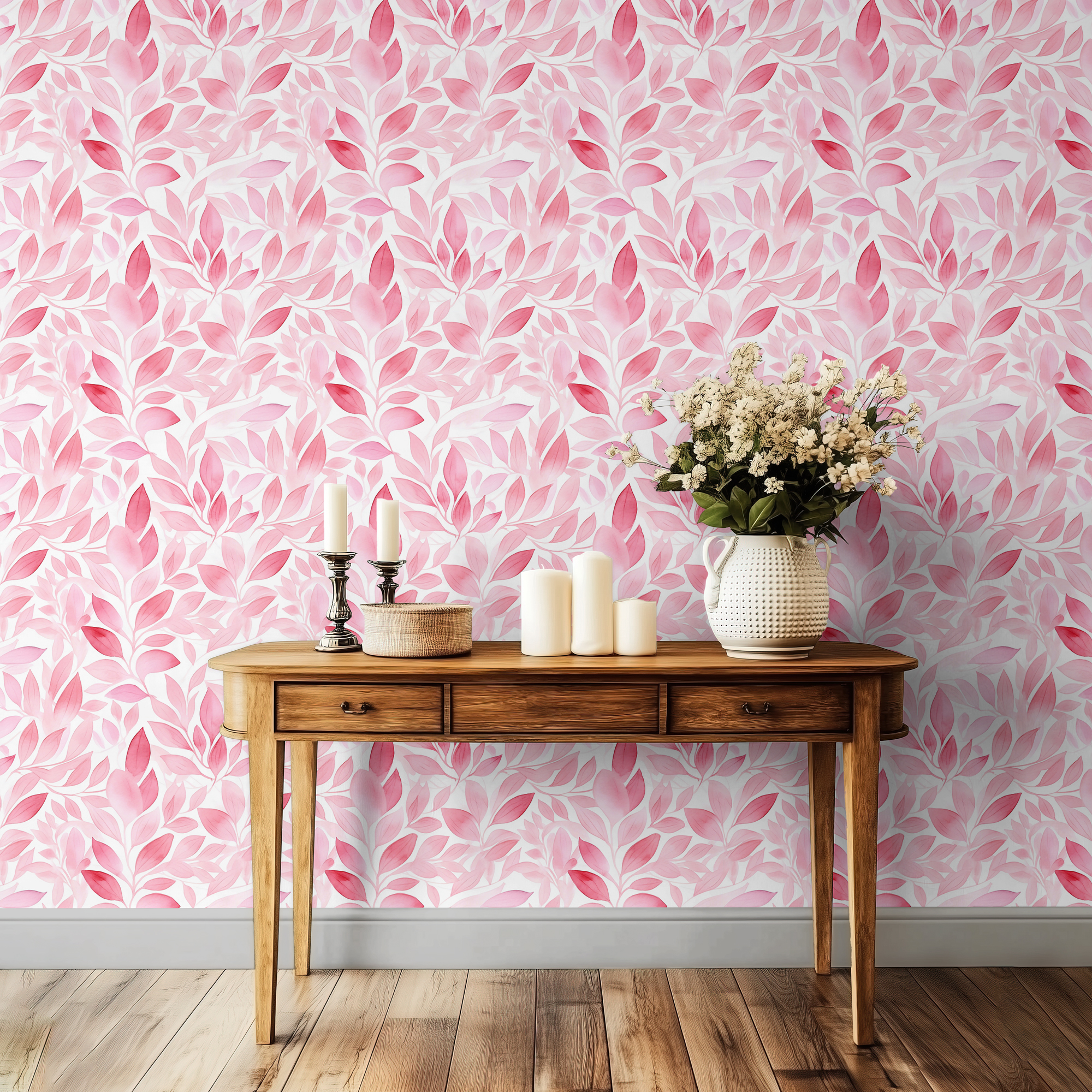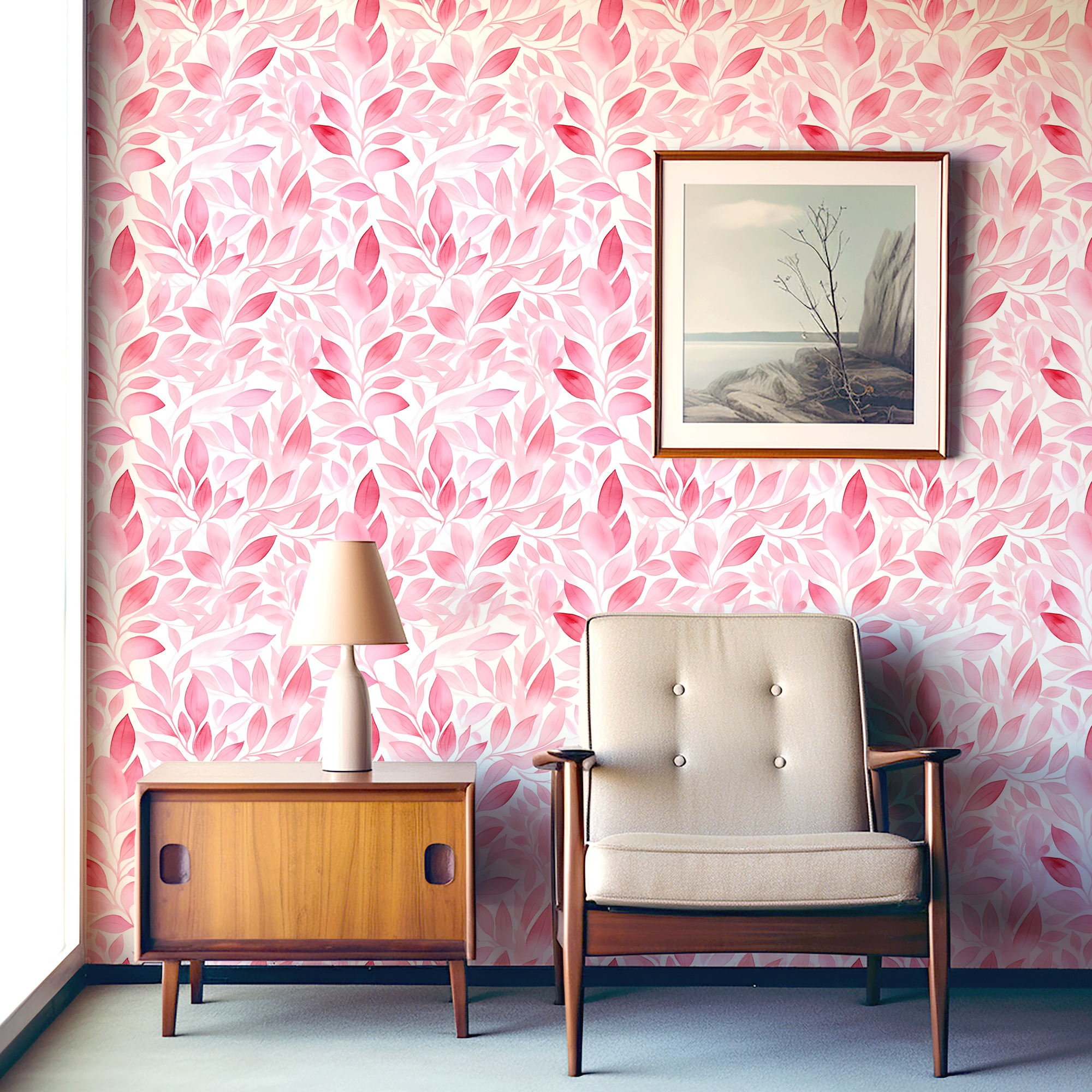 Add warmth and elegance to your space with our Pink Leaf Wallpaper, featuring watercolor foliage in layered shades of pink. The flowing botanical pattern brings a romantic and uplifting atmosphere, making any room feel cozy and stylish.