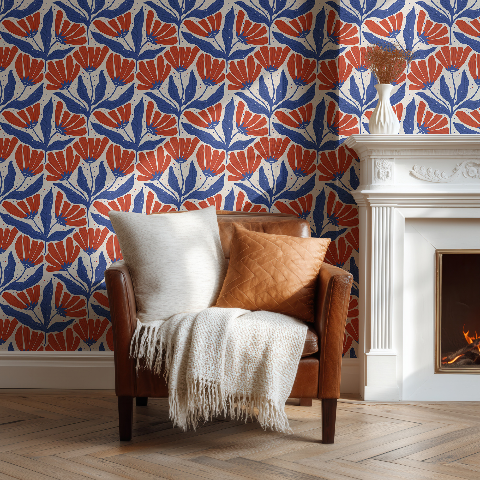 Perfect for eclectic living rooms, creative workspaces, or statement accent walls, this vintage-inspired botanical design pairs beautifully with classic leather furniture and woven textiles for a rich, inviting look.