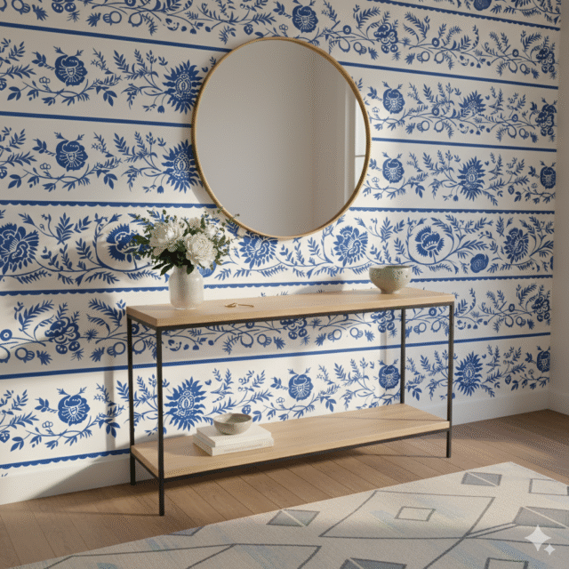 Let your statement wall be the star. Pair bold wallpaper with solid-colored furniture and simple décor to create harmony. Think of it as curating contrast — giving your space both energy and calm.